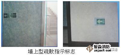 墻上型疏散指示標(biāo)志,箭頭應(yīng)該指向最近的出口(右邊);應(yīng)安裝在距地面1m以下。