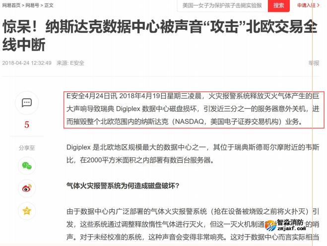 結(jié)論:本條是針對(duì)目前很多數(shù)據(jù)中心安裝氣體滅火系統(tǒng),經(jīng)過實(shí)驗(yàn)噴嘴噴放時(shí)的噪音達(dá)到100分貝以上時(shí),會(huì)造成服務(wù)器磁盤震裂而造成重大損失,在2018年4月份曾因氣體滅火噴放的巨大噪音導(dǎo)致瑞典數(shù)據(jù)中心大量磁盤損壞,有三分之一的服務(wù)器關(guān)機(jī),進(jìn)而造成北歐納斯達(dá)克業(yè)務(wù)停擺。